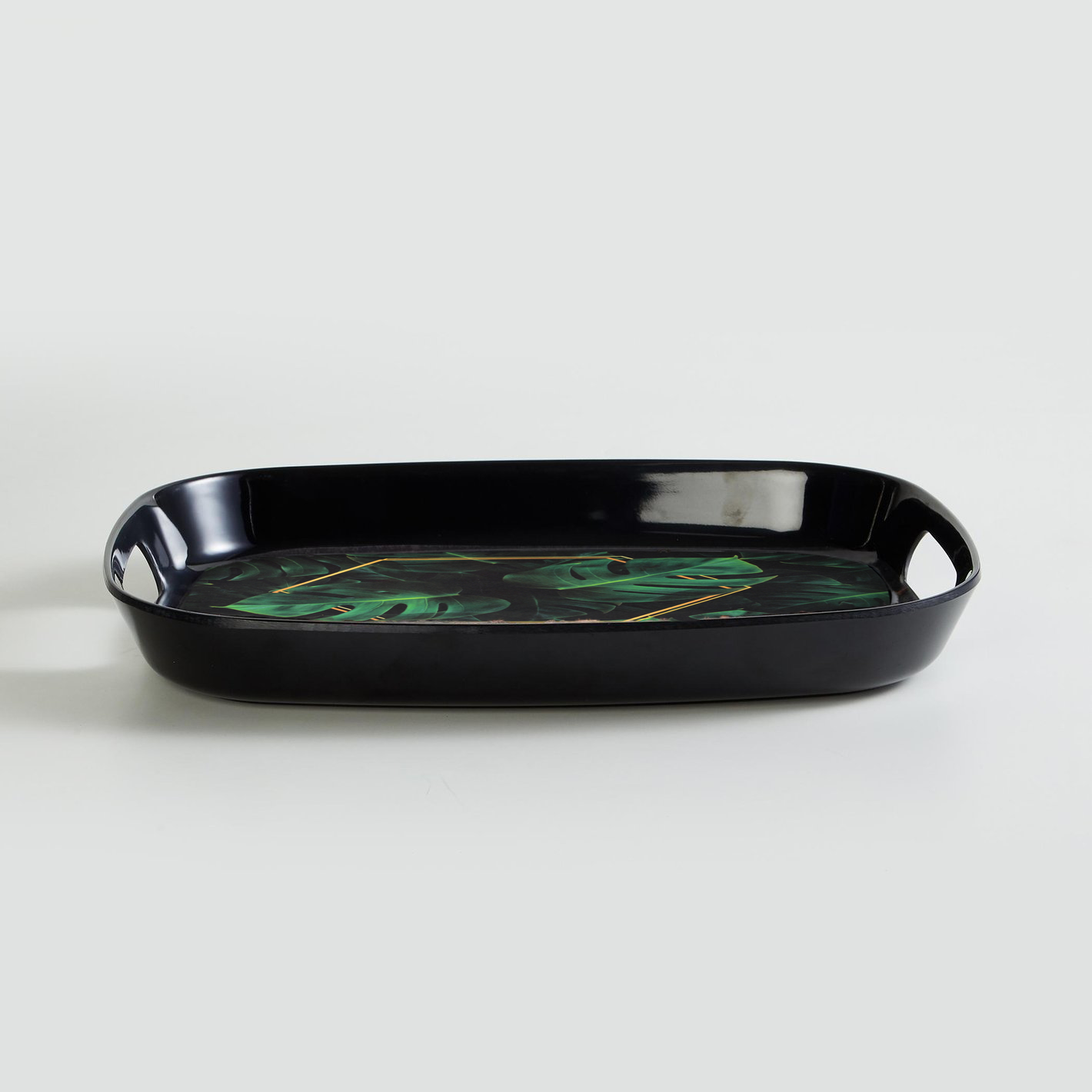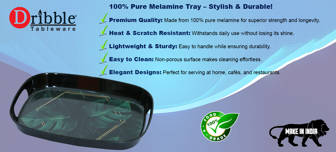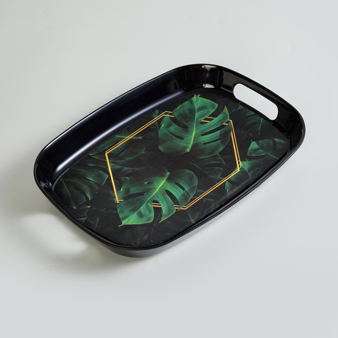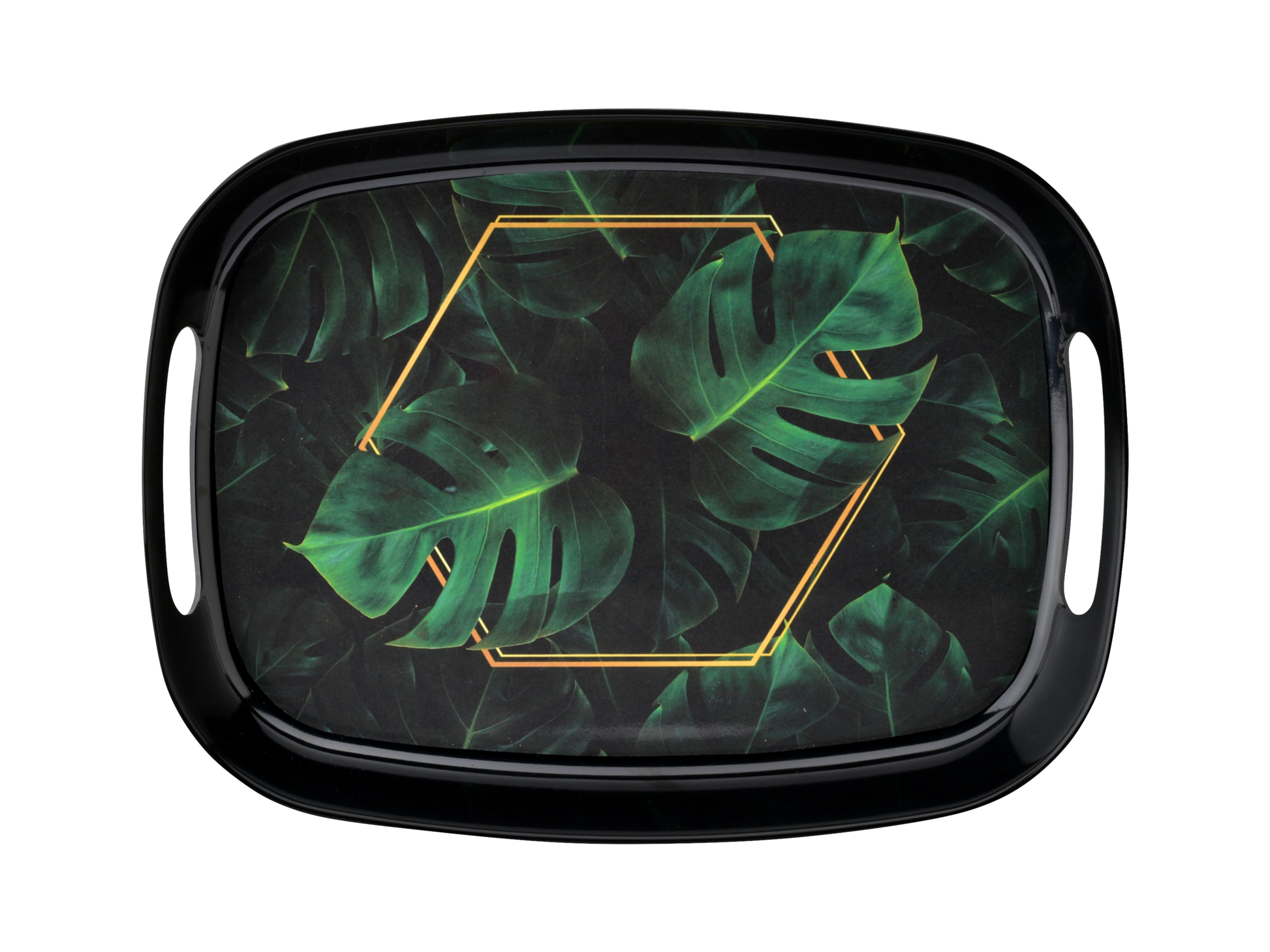 Dribble 100% Pure Melamine Serving Tray with Handle Small, Food Grade, BPA Free, for Kitchen, Dining, Serving Tea, Coffee and Meals, Shape Rectangular, Design: Night Safari