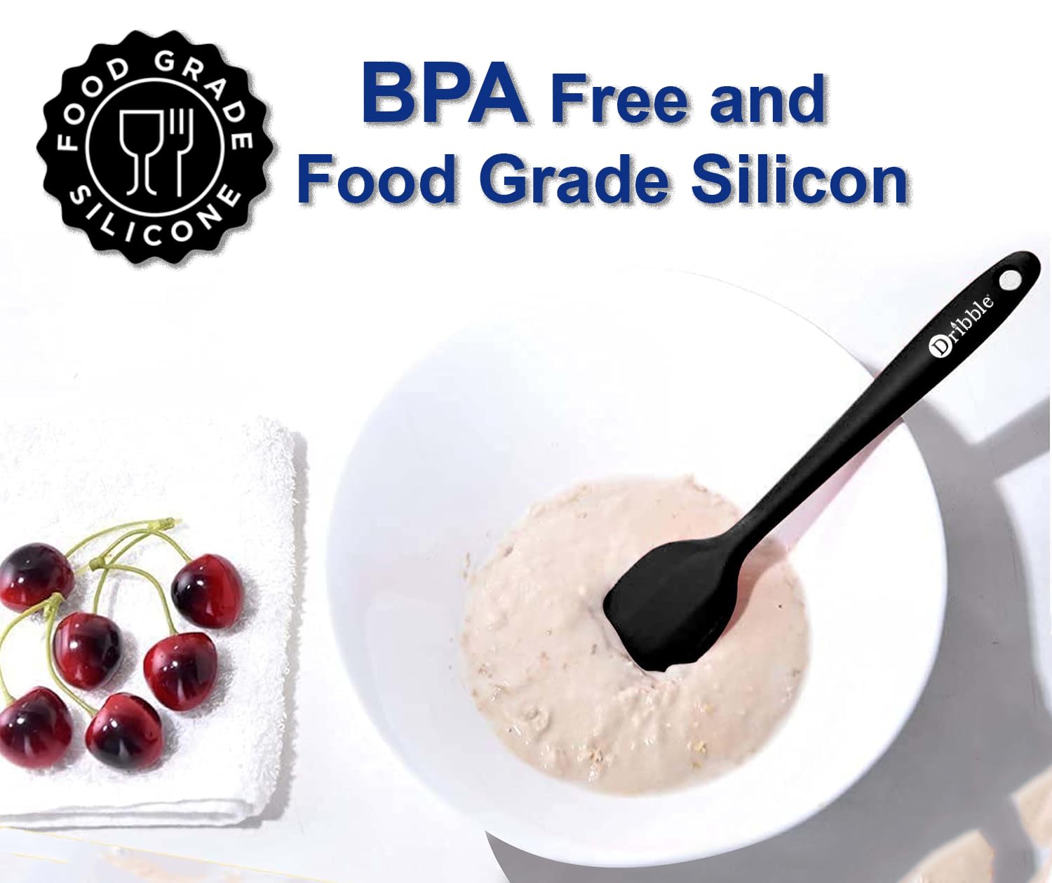 Dribble Premium Big & Sturdy Silicone Spatula Set of 3, Heat Resistant Spatulas for Non Stick Cooking,Baking & Mixing-BPA-Free & Food Grade, Black