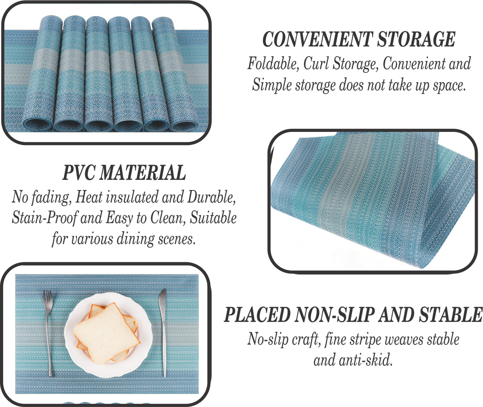 - ✅ Premium Quality PVC Material – Crafted from durable, eco-friendly PVC, these placemats are built to last and offer superior protection for your dining table from heat, spills, and scratches.